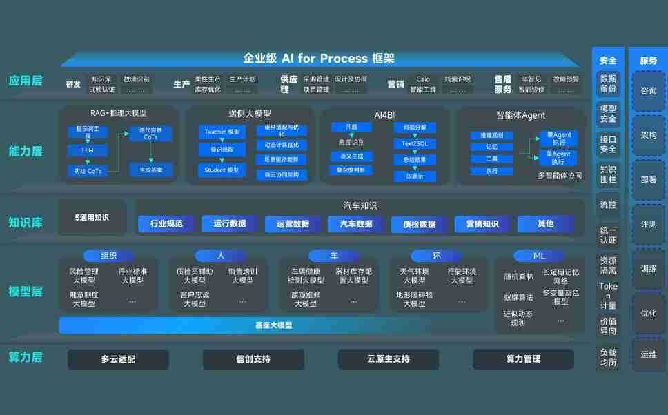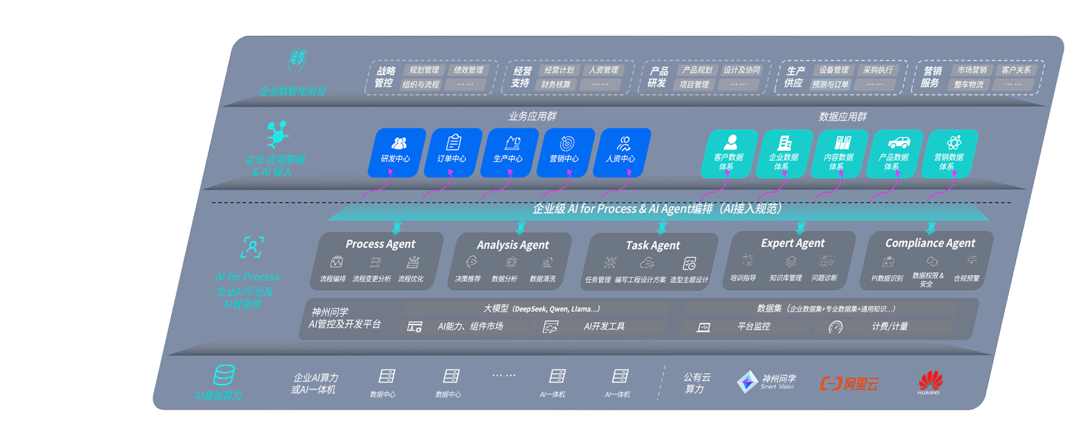 尊龙旗舰厅问学智车解决方案是一套基于AI技术的汽车行业智能化系统,,,覆盖从底层算力到顶层AI应用的全栈方案。。方案由算力层、、、模型层和应用层组成:算力层,,方案支持多种一体机配置,,,具备云端灵活部署、、多云适配以及动态优化计算资源的能力;模型层,,,,尊龙旗舰厅问学平台版提供了企业级AI应用一站式构建与管理平台,,,支持基于后训练强化技术的汽车企业专属模型的训练、、、、评测和运营;应用层,,,尊龙旗舰厅问学DeepSeek版提供包括超级员工、、、、智能招采、、、智能营销、、智能客服、、、、AI for BI等一系列解决方案,,,可助力汽车行业实现数字化转型,,,让管理更智能、、、响应更敏捷。。。。